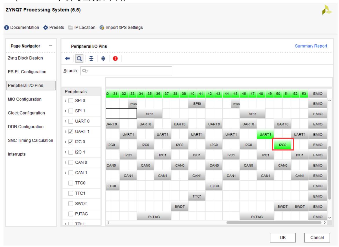 在硬件层面,本实验建议在已存在的 Vivado 工程 ps_hello 基础上另存为 i2c_test,将 I2C0 对应映射到 PS 的 MIO50–MIO51 并根据原理图设置电平与上拉/下拉策略,然后重新生成 Block Design 输出并导出硬件平台(HDF)供 SDK 使用;该步骤的主要功能是确保软件端获得正确的外设地址映射与引脚约束,从而在运行时能直接访问物理 I2C 总线。