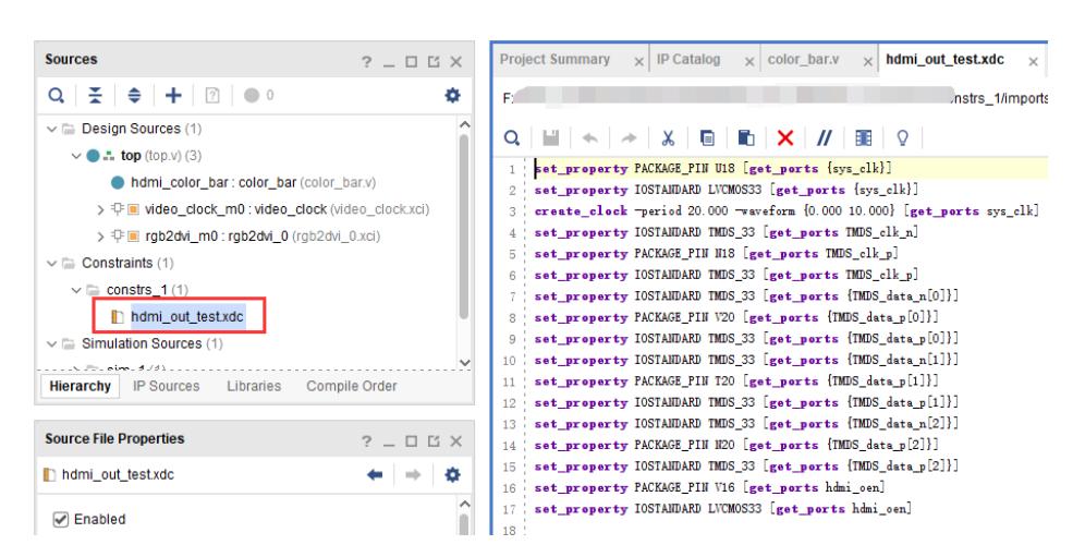 set_property IOSTANDARD LVCMOS33 [get_ports hdmi_oen]在约束中,应为 TMDS 差分对指定 TMDS_33 电平标准,并为系统时钟创建合适的时钟约束,以利于综合与实现过程中时序分析的准确性。