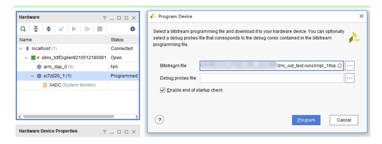 生成比特流前请确认所有约束、IP 生成和时钟配置正确。完成比特流生成后,将 HDMI 输出线缆连接至支持 1280×720@60 的显示器,并通过 Hardware Manager 下载到设备或通过 JTAG 编程。