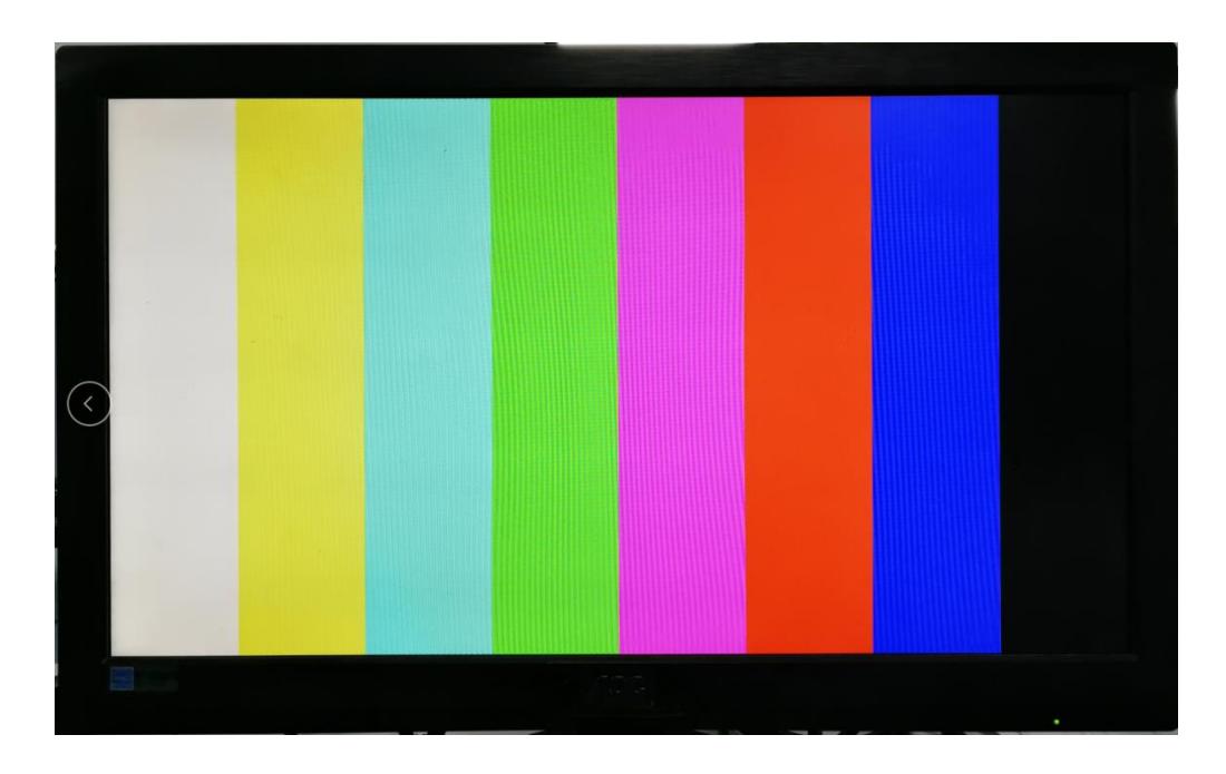 下载完成后,若配置与时序正确,显示器应以预期分辨率显示彩条图像。